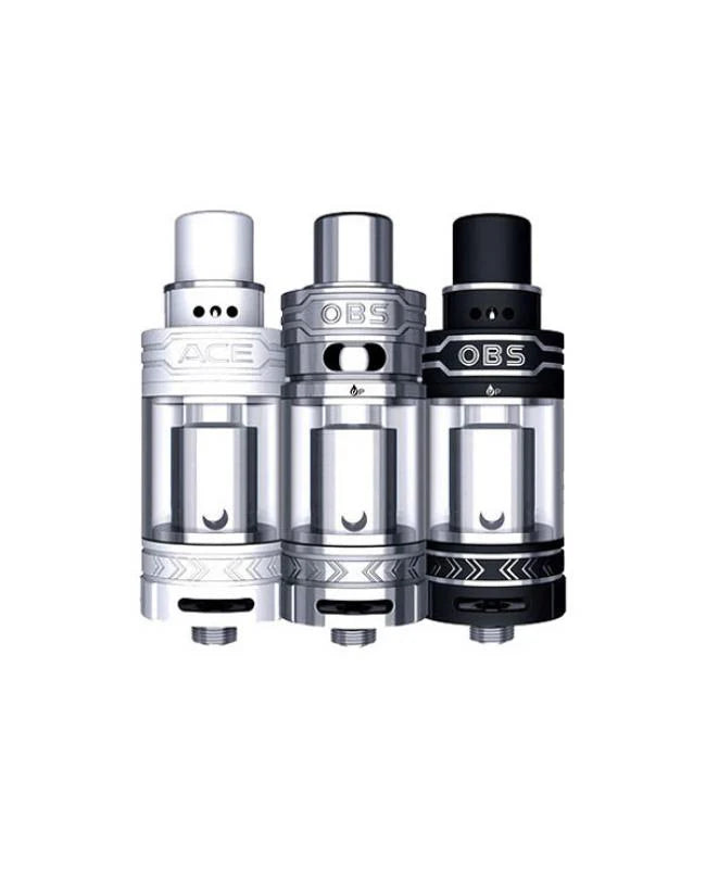 OBS ace is newest sub ohm tank, the new tank made of stainless steel and pyrex glass, three different colors avaliable, the diameter of new OBS tank is 22mm, can hold 4.5ml e juice, with top refill design, no leaking worry. easy juice flows control by turning the glass tube, the OBS ace sub ohm tank with the newest innovative ceramic coil(ICC), longer lifespan other organic cotton coils, no burning smell. airflow control slots on top and bottom, vapers can control airflow easily.
